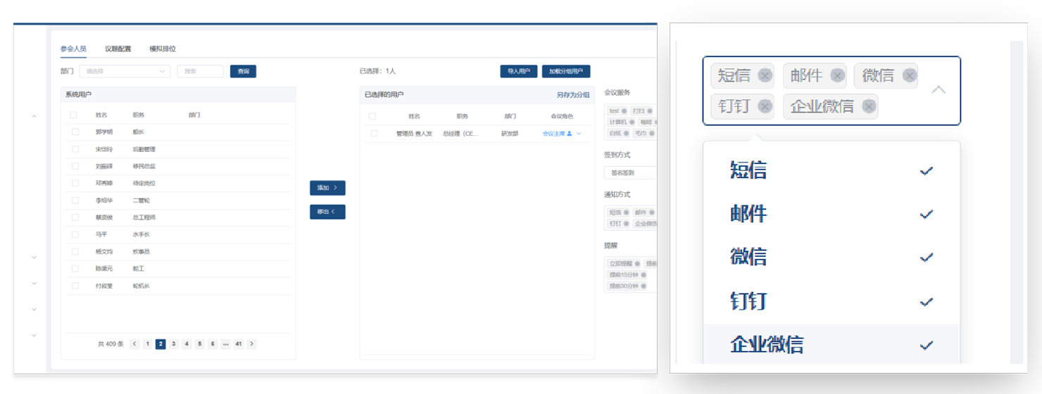 系统标准配置短信会议通知服务、邮件通知服务、电话通知服务等。