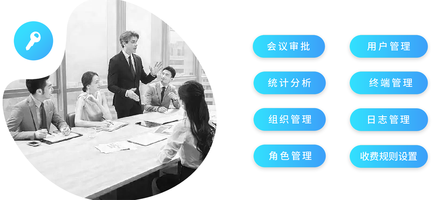1、会务管理系统(必配):安装在服务端,可支持多个会议室,多个会议的同时管理;用信息化手段搭建一个高效、便捷和合理的会务管理系统,统一有效的管理会务信息,包含会议室集中管理、会议预约、会务服务等功能。