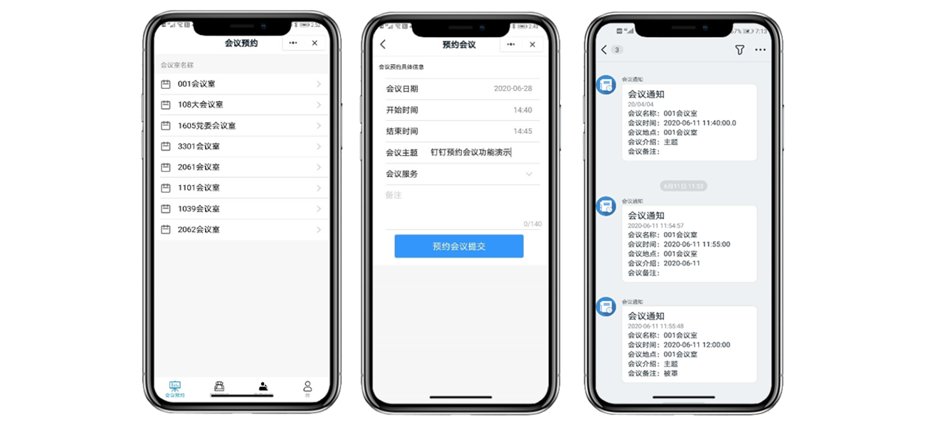 微信获取会议通知,接收公众号推送会议信息;钉钉获取会议通知,接收微应用推送的会议信息。