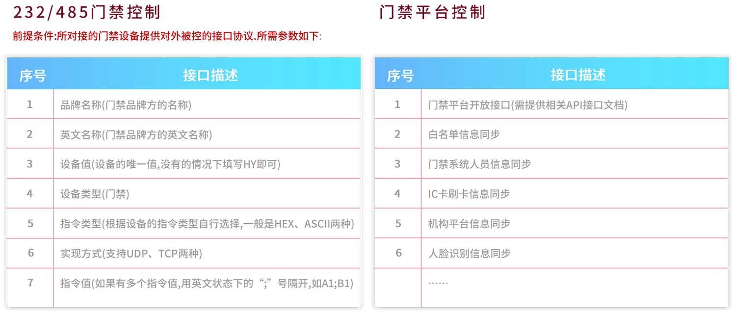门禁对接-接口需求概述: