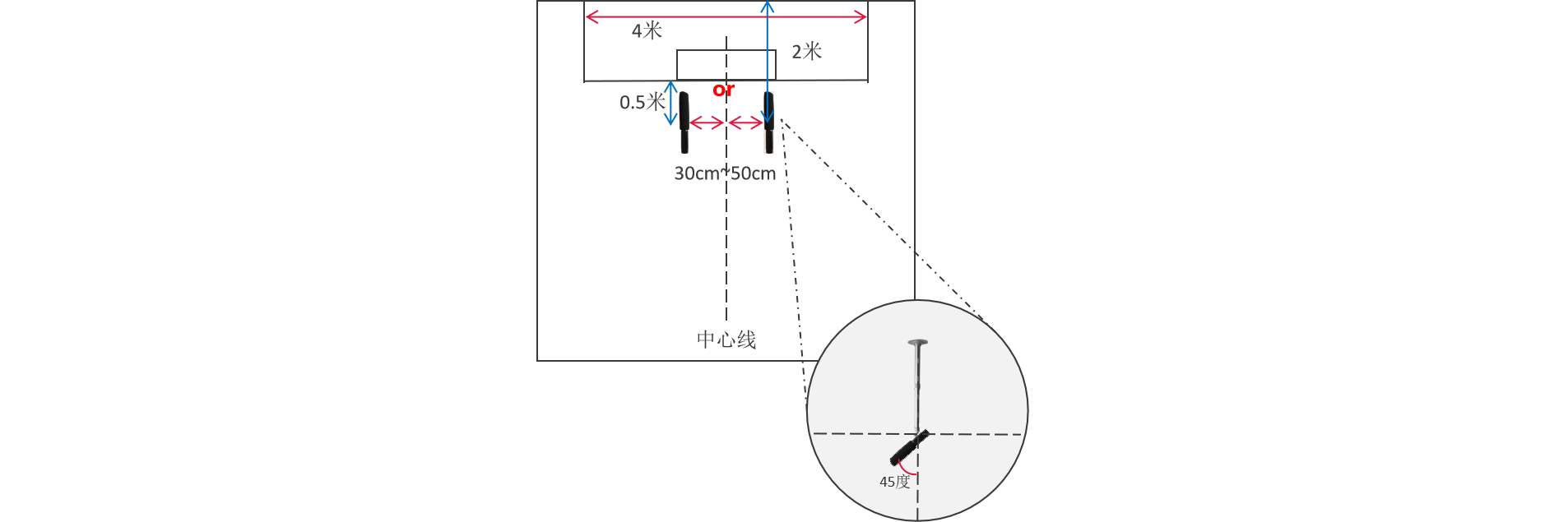 1、麦克风安装时应尽量避免安装在教室的纵向中轴线,可向左或向右偏离30厘米-50厘米。